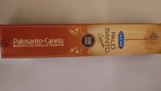 incienso de la marca ULLAS. - Fragancia: Palo Santo Canela. - Tipo: Incienso de Masala Premium. - Serie: Twin Fragrance.