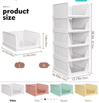 Conjunto de cajas de almacenamiento para organizar tu armario. Son apilables y extraíbles para facilitar el acceso. - Diseño perforado para ventilación. - Color rosa y beige. - Fabricadas en plástico resistente.