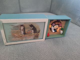 Caja de música de gatitos cllor azul celeste. Medidas: 8,5cm×5,5cm×2,5cm