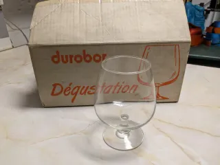 Set de copas de brandy. Caja Seis copas de vidrio marca Durobor. Caja Seis copas de cristal marca Zwiesel Glas. Caja Seis copas de cristal más grandes