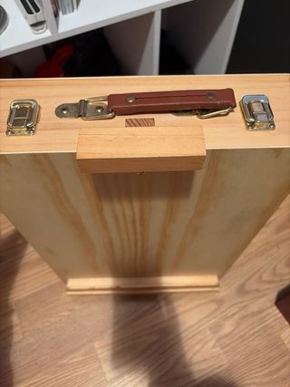Caja de arte de madera de la marca Crelando. Ideal para organizar materiales de arte y para apoyar cuadros . Viene sin las pinturas. Precio negociable - Diseño compacto y funcional. - Acabado natural de la madera.