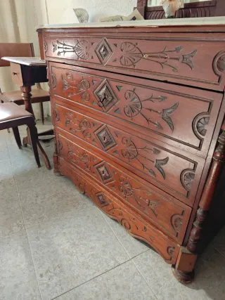 Cómoda antigua madera mármol