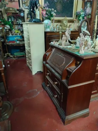 Es Una Vitrina escritorio antigua la parte superior acristalada, escritorio con compartimento y parte inferior con 3 cajoneras. Medidas del escritorio 68 de ancho x 43 de fondo Medidas de la Vitrina 68 de ancho x 23 de fondo y 200 cm de alto