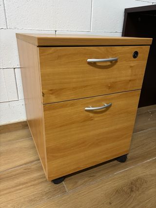 Cajonera de oficina con dos cajones. Es un mueble práctico para organizar documentos. - Cajones con tiradores. - No funciona la cerradura. - El cajón inferior es de tipo archivador.