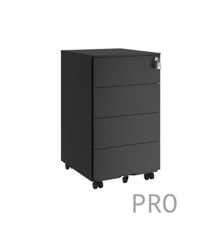 Cajonera archivador de cuatro cajones, ideal para organizar documentos y material de oficina. - Diseño vertical y compacto. - Tiradores integrados en cada cajón. - Cerradura con llave en los cajones inferiores.
