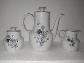 servicio de loza elegante impecable vintage sin estrenar siempre en vitrina decorativa con otras vajillas azucarera / azucarero lechera / jarra grande cafetera / jarra pequeña 20€ las tres piezas de las fotos NO LEER copa coñac vino agua vajilla arcopal Bohemia d arques Cartuja de Sevilla Oxford quadrifoglio plomo salón dormitorio habitación mesa mesita mesilla de noche muebles de habitación salón sinfonier cómoda consola aparador zapatero mueble tv rinconera cajonera armario entrada entradita recibidor comedor vitrina expositor silla sillas sillón terracota teja marrón barro arcilla cerámica maceta tiesto terracota