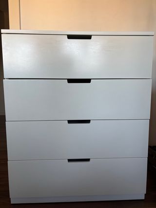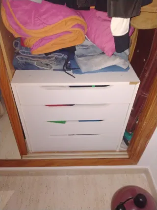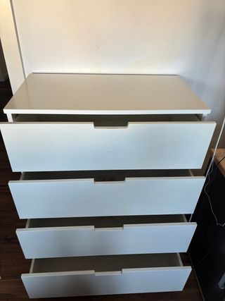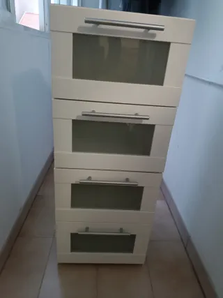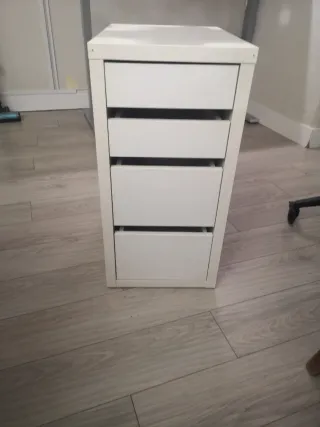 Cajonera de la marca Ikea en color blanco. Cuenta con cuatro cajones. - Diseño moderno y funcional. - Ideal para organizar espacios. Presenta pequeños desperfectos y desgastes, de ahí el precio, los cajones funcionan perfectamente, se recoge cerca de metro Gregorio marañón
