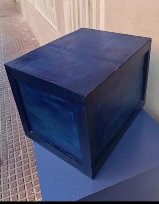 Cajonera grande con 2 cajones de color azul. Medidas 38,5x38,5x37,5. Cajonera pequeña con 3 cajones de color blanca, medidas18x32x25. Esta última tiene unas pequeñas manchas en la parte superior. Modelo grande 8 euros y el pequeño 4 euros. Los 2 modelos a 10 euros.