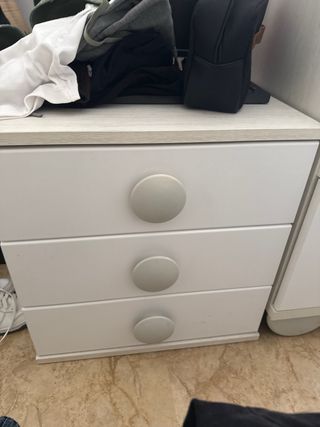 cómoda d 3 cajones en color blanco, estado impecable... tan solo un pequeño arañazo en un costado del mueble.