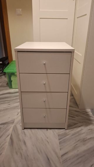 Mueble de almacenaje con cuatro cajones frontales de IKEA. Su diseño moderno y limpio se adapta a cualquier estancia. - Gran capacidad de almacenaje. - Cuatro cajones con tiradores. - Patas de soporte. - Práctico y resistente. Tiene algunos signos de uso que se muestran en las fotos. Urge su venta por mudanza.