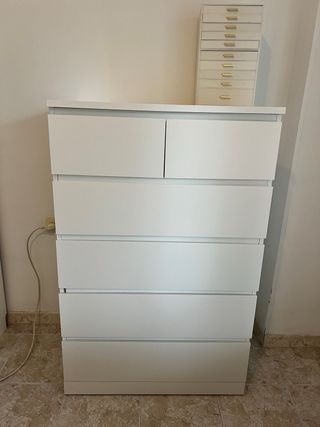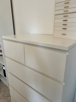 Cajonera de la serie Malm de Ikea. Un mueble de almacenamiento versátil y de diseño moderno. - Acabado en blanco. - Fabricada en madera.