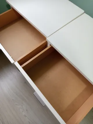 Mueble auxiliar con un diseño moderno y funcional, ideal para organizar tu espacio de trabajo. Se puede usar para el despacho, como complemento de escritorio e incluso como mesita de noche o mueble de dormitorio. - Es un mueble profundo por lo cual tiene una buena capacidad de almacenaje. - Medidas cm: 47,5ancho 49prof. 74alto - La parte superior de los cajones tiene un agujero porque instalé ahí mi impresora y se lo hice para que pasara el cable, en el día a día no se ve. - En la parte superior del mueble hay dos pequeños agujeros porque tenía una tabla de madera que hacia de mesa. Si no os gustan se pueden disimular con masilla.