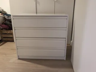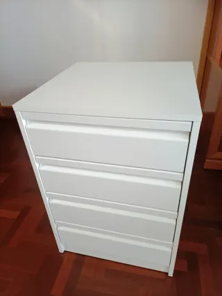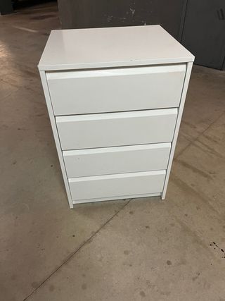 Cajonera blanca de cuatro cajones de Leroy Merlin. Presenta minimo defecto estetico en esquina trasera derecha (de origen).