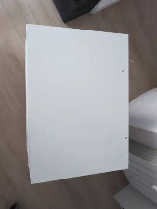 Cajonera blanca con cuatro cajones. Medidas 70x50 Altura 72cm Cada cajón mide de alto 16 Tiene marcas de tornillos en la parte superior y laterales ya que estaba empotrada en un armario. Los cajones van bien, se vende por cambio a una mas grande.