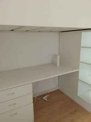 Cama alta IKEA con escritorio blanco