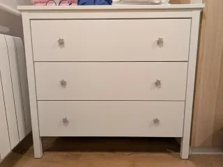 Cómoda de tres cajones de Ikea. - Diseño moderno y funcional. - Tiradores en forma de estrella.