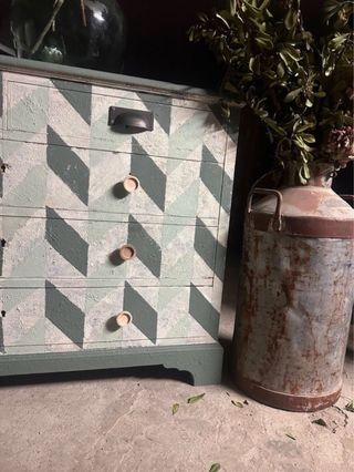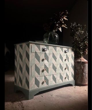 Preciosa comoda antigua restaurada con un elegante dibuko geometruco realizado sibre una patina gustaviana. Un mueble único y exclusivo que quedará precioso en el lugar donde tú elijas. 114x80x45 Más muebles en nuestro perfil. Si quieres ver nuestros trabajos por visitar nuestro perfil de Instagram losmueblesdelnaufragio. Se realizan envíos a toda la península. No leer: cómoda, Vintage, aparador industrial, vitrina, mueble antiguo, decoración interiores, decoración industrial, ZARA HOME, maison du monde, regalo boda, alacena, sinfonier, contraventanas, mesita de noche, Mesillas.