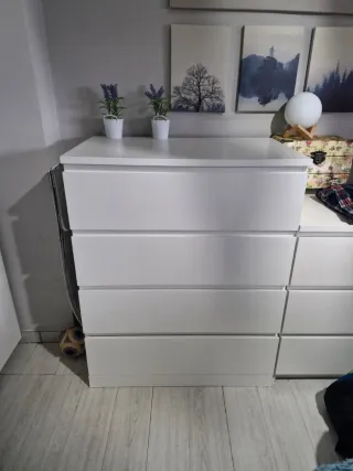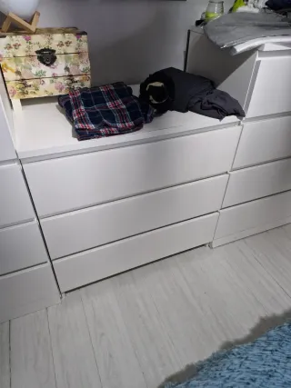 2 cajoneras de 4 cajones malm ikea. (Cada una cuesta 100 euros en ikea) 50 cada una. 1 cajonera de 3 cajones malm ikea (cuesta 80 en ikea) yo la vendo en 40. Recogida aqui en mi domicilio