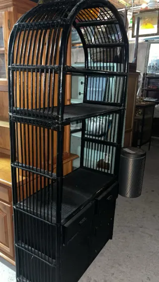 Estantería vitrina con un diseño curvo y elegante, combinando bambú , ratán mimbre y metal. - Medidas: Ancho 93 cm, Fondo 41 cm, Altura 200 cm. - Estructura de metal con detalles en bambú. - Múltiples estantes para almacenamiento. CUADRO PINTURA APARADOR COMODA CONSOLA MUEBLE LIBRERIA ARMARIO MESA ANTIGUEDAD ESPEJO MADERA MARMOL RECIBIDOR VITRINA ESTANTERIA REPISA CAJONERA VINTAGE..... MUCHOS MÁS OBJETOS EN MI PERFIL