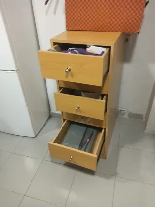 Vendo cajonera de 4 cajones por falta de espacio. Es un mueble muy sólido y estable, con un acabado de madera de calidad. Los cajones son amplios y deslizan con suavidad gracias a sus raíles metálicos. Lo mejor de este mueble: • Gran capacidad: 4 cajones profundos. Dos de ellos el doble de grandes. • He incluido fotos con el metro para que veas la profundidad y medidas exactas de los cajones. Medidas principales: 100x60x50