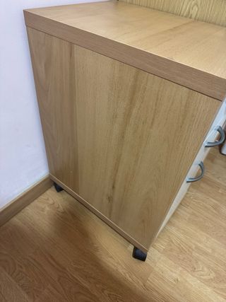 Cajonera de escritorio ideal para organizar tu espacio de trabajo. Cuenta con ruedas para facilitar su movilidad. Yo lo he usado en la habitación para poner ropa de cama. Alto 45, ancho 63 y fondo 43