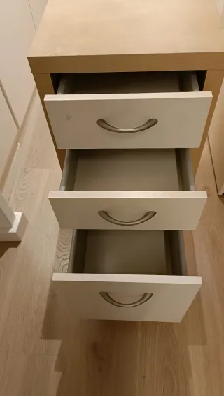 Descripción: Vendo cajonera con ruedas IKEA TROTTEN de 3 cajones, color blanco, en estado ideal / impecable. Funciona perfecto: ruedas y cajones van suaves, sin golpes ni marcas. Ideal para oficina en casa o escritorio. Lista para recoger.