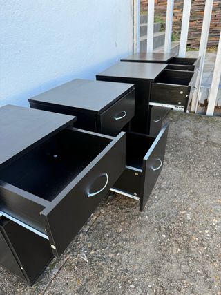 RECOGIDA domingo 28/12 en C/Príncipe de Vergara, 85 por mudanza. Este producto no admite rebaja. ¡Echa un vistazo al resto! 😊 Precio original: 59€ Cajonera de Ikea en color negro, con un diseño moderno y funcional. - Cuatro cajones espaciosos que cierran bien. - Estructura de madera resistente. - Ruedas no incluidas, no se las pusimos pero si las encuentro las dejo en uno de los cajones.