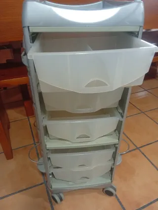 Práctica cajonera de baño con un diseño moderno y funcional. Ideal para organizar tus artículos de aseo y mantener el orden. - Estructura metálica. - Cajones blancos. - Ruedas para fácil movilidad.