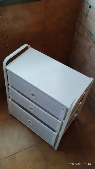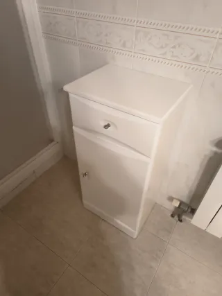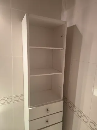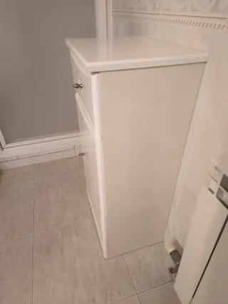 Muebles auxiliares de baño con cajones de distintos tamaños. 20€ cada uno - Estructura blanca. - Cajones blancos. - Tiradores redondos.