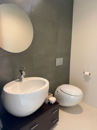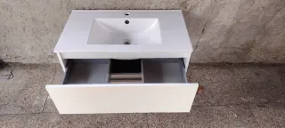 Conjunto de mueble de baño suspendido con lavabo cerámica (grifería no incluida). En las fotos puede verse el precio original. Yo lo vendo por la mitad. Solo recogidas. Madrid - Mueble de 2 cajones tamaño 100cm - Lavabo de cerámica. - Acabado lacado blanco mate. Marca AVILA DOS Primer cajón incluye zona central con distribuidores como en la foto. El mueble está como nuevo, sin uso ya que fue temporal para exposición.
