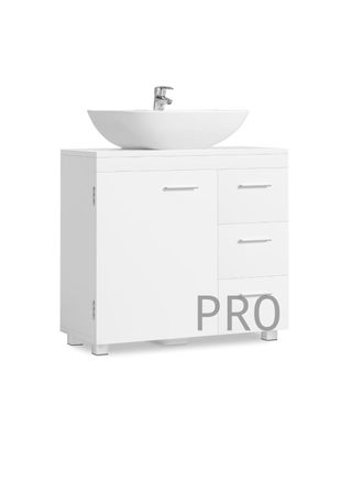 Mueble Bajo Lavabo, Armario de Baño, 3 Cajones, 2 Compartimentos Detrás de la Puerta, Apto para Lavabos con Pedestal, con Pies, 30 x 70 x 64 cm, Blanco Nube BBK504W01
