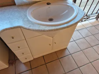 Mueble de baño con lavabo integrado. - Acabado en color blanco y beige. - Lavabo de cerámica. - cajoneras a juego NO SE HACEN ENVIOS
