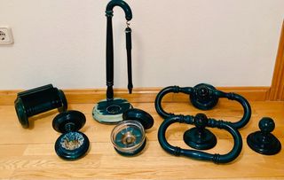 Conjunto de apliques para baño en un llamativo color verde azulado. DE MADERA. Incluye todos elementos decorativos y funcionales. Se venden por conjunto Hashtag: cocina salón dormitorio habitación comedor espejo recibidor cama canapé mesa silla recibidor salón baño cocina jardín Ikea conforama leroy merlin bricodepot bricomart mesilla cabecero colchón cajonera armario muebles aseo toalla bañera soporte papel lack kallax