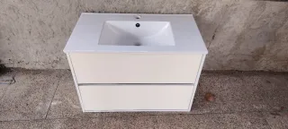 Mueble de baño con encimera. Mármol lavabo , espejo y con o sin cajonera La piedra te la corto a medida con lo que elijas - Diseño moderno y funcional. - Amplio espacio de almacenamiento con cajones y puertas. Medida con cajonera ancho 90, sin ella 80