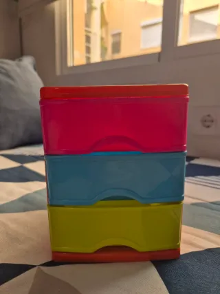 🌈✨ Cajonera pequeña de 3 cajones ✨🌈 Práctica y colorida cajonera de 3 cajones, ideal para organizar todo tipo de objetos: desde accesorios y joyas hasta material de oficina o manualidades. Cada cajón tiene un color diferente, aportando un toque divertido y alegre a cualquier espacio. Compacta y funcional, se adapta fácilmente a tu escritorio, habitación o baño. ✔️ 3 cajones de colores para organizar tus cosas. ✔️ Tamaño compacto, perfecta para espacios pequeños. ✔️ Fácil de usar y de combinar con cualquier decoración. Perfecta para tener todo ordenado. 📏 Medidas: 17 cm altura, 13'5 cm ancho y 16,5 cm produndidad.