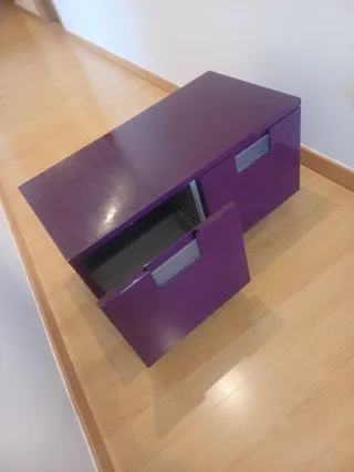 Cajonera que se ha utilizado en salón aunque también sirve para otros usos como por ejemplo el baño. Tiene dos cajones y una puertecilla