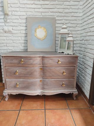 Preciosa cómoda de madera maciza, recién restaurada dándole un proceso de madera lavada, de limpieza profunda y acabada con cera blanca pulida estilo sabby chic romántico francés. Conserva desperfectos e impercciones propias de los años que le imprimen ese carácter especial. Medidas: 115 ancho, 74 alto, 49 fondo. Piezas únicas y exclusivas, ninguna igual, decoración original en cualquier ambiente y estancia. Actualización de muebles antiguos mesitas, mesa, mesillas, aparador, vitrina, armario, mueble entrada, baño, tv, cabecero, sillas, libreria, bureau, escritorio, etc.