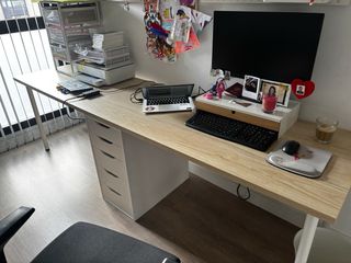Escritorio Karlby IKEA: Encimera de cocina 186x63 x 4 patas. Cajonera alex ikea.