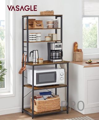 Estante de cocina VASAGLE, estante de panadería, 6 estantes y 6 ganchos