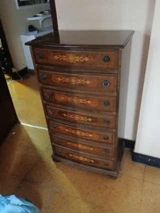 Preciosa cajonera de madera, ideal para dormitorio o recibidor. Se encuentra en muy buen estado. Altura 111 cm - Siete cajones con tiradores de metal. - Diseño clásico y elegante. - Perfecta para organizar tu ropa u otros objetos.
