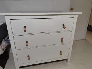Cómoda de tres cajones con un diseño moderno y funcional. Sus tiradores de cuero le dan un toque distintivo. - Estructura de madera. - Tiradores de cuero.