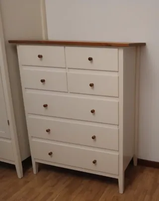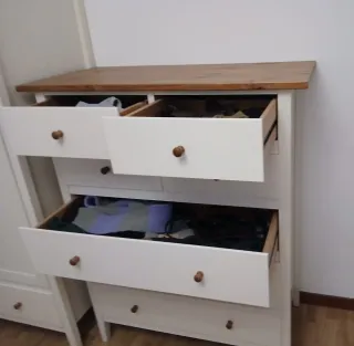 Cómoda de madera Ikea, en buen estado. Muy practica, con 3 cajones y 2 compartimentos, que se hacen extensibles para funcionalidad de cambiador.