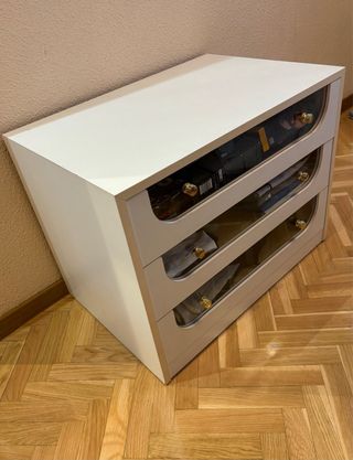 Mueble de cajones con frentes de cristal. - Diseño moderno y funcional. - Acabado en blanco. - Incorpora detalles en cristal. En perfectas condiciones. Precio negociable.