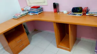 vendo escritorio se madera buena , se los se antes falta restauracion, continer cajoneras, ideal para una habitacion , vendo por reforma