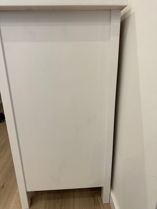 Cómoda Hauga de Ikea, muy buen estado, con enchufe USB incluido Hemos hecho una pequeña abertura en la parte trasera para pasar el cable del alargador con USB. Se vende junto con el alargador (4 enchufes + 2 puertos USB). Ideal para oficina, dormitorio o zona de carga - Color blanco. Se vende Montada, para recoger en ALCOY