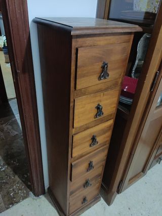 Precioso sinfonier de madera maciza en color nogal, tiene 6 cajones muy amplios, en muy buen estado. Fácil carga desde ascensor.