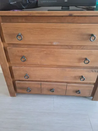 Solo me queda una. La cajonera mide 1 metro de ancho, 71/73 de alto y 45cm de fondo. - Cajoneras de madera de pino. - Diseño moderno con tiradores integrados. - Color natural de la madera con variaciones de tono.