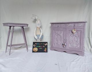 Mueble Auxiliar recién reciclado en lila y detalles en blanco. Precio 95€ Entrada Entradita Aparador Cómoda Silla Mesa Armario Sinfonier Chifonier Cajonera Sillón Sofá