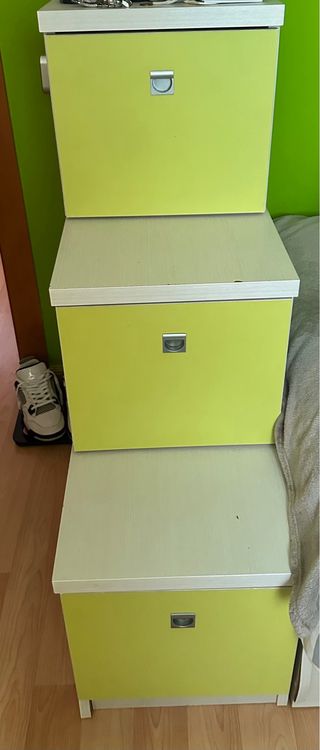 Una condicion a ese precio que hay que venir a buscarlo maximo viernes 13 febrero . Mueble de almacenaje con diseño moderno y funcional. - Estructura de madera. - Color verde lima y blanco. - Tiradores metálicos.