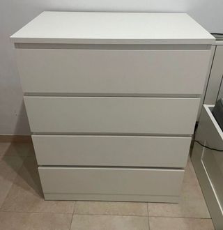 Hay que limpiarla porque tiene restos de pegamento de la cinta aislante usada en la mudanza Cajonera de metal de Ikea con un diseño funcional. - Acabado en color blanco. - Tiradores metálicos plateados.